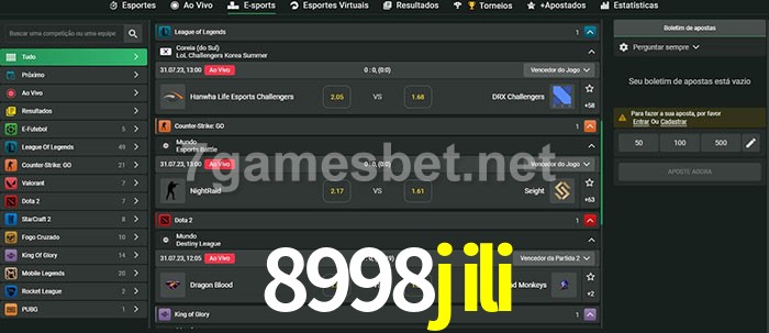 O 8998jili oferece uma grande seleção de opções de apostas em e-sports com probabilidades competitivas